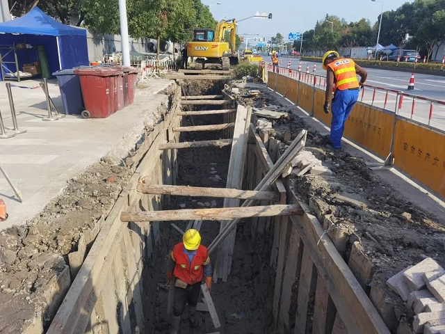 在外青松公路千新公路至油墩港路段,積水點改造項目進入到排水管道鋪設和雨水井施工的收尾工作。據該項目負責人介紹,以往每逢暴雨期間,外青松公路、千新公路交叉口積水嚴重,對周邊人員正常出行造成很大的影響。為徹底解決積水問題,在外青松公路道路新建雙排管口直徑為1000毫米雨水管道,自千新公路西側起排,收集道路路面及兩側地塊雨水后排入油墩港,減輕片區的排水壓力,解決困擾周邊居民已久的內澇問題。“之前的排水系統年代久,管道積淤情況嚴重,而且這邊道路地勢比較低,非常容易積水。這次改造施工主要以大口徑的管道的排設為主,在非機動車道上增設進水井,在雨量大的時候可以及時水排走,達到解決積水問題的效果。”積水點改造項目經理張源說。