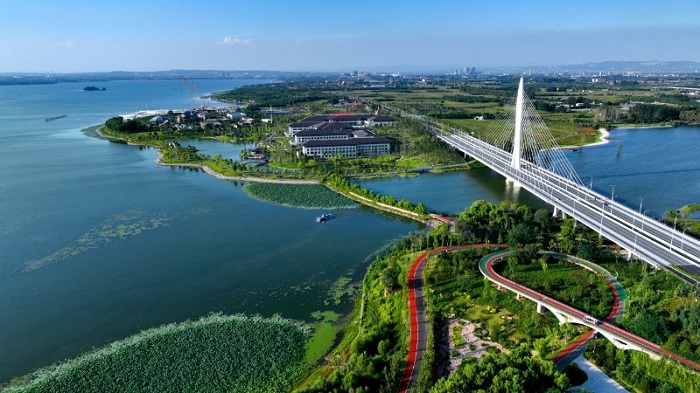 圖為長(zhǎng)治市漳澤湖國(guó)家城市濕地公園