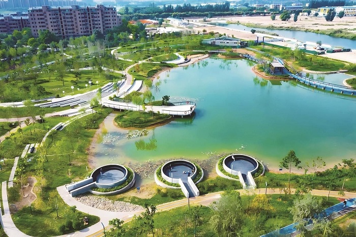 機制保障 系統化治理探索新路徑 近日,銀川市海綿城市建設工作經驗入選《全國海綿城市建設案例集》,成為全國60個典型實踐城市之一。對于西北城市而言,能夠充分利用好自然降水,是緩解干旱和內澇的一項重要民生舉措。作為全國第二批系統化全域推進海綿城市建設示范城市,銀川市提出了“示范期末40%以上建成區面積達到30年一遇內澇防治標準,內澇積水區段消除比例達到100%”目標,如今示范期已滿,全市海綿城市建設達標面積134.24平方公里,城市防洪標準、天然水域面積比例、可透水面積比例、污水集中收集率、污水處理廠進水BOD(生化需氧量)濃度等均達到考核指標要求,并且連續三年獲全國系統化全域推進海綿城市建設示范城市績效考核B等次成績。