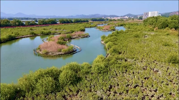 以紅樹林保護(hù)修復(fù)為核心,惠州推進(jìn)“退養(yǎng)還濕—潮溝修復(fù)—生物廊道構(gòu)建”立體修復(fù)工程,重建紅樹林濕地系統(tǒng)。通過陸海統(tǒng)籌、要素聯(lián)動(dòng)、功能融合的多維治理架構(gòu),初步形成海灣生態(tài)環(huán)境治理的“控源截污—立體修復(fù)—功能再生”大灣區(qū)實(shí)踐。2023年,好招樓、鹽洲島紅樹林納入省級(jí)重要濕地名錄,形成“雙核驅(qū)動(dòng)”濕地保育格局。2024年,惠東縣海洋生態(tài)保護(hù)修復(fù)項(xiàng)目入選自然資源部“典型案例”,提供“科學(xué)修復(fù)—系統(tǒng)管護(hù)—社區(qū)共治”的“惠州經(jīng)驗(yàn)”。